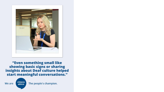 We were incredibly proud to see Chloe, one of our team members, recognised nationally by Citizens Advice for her work raising awareness of BSL and championing the Deaf community. Her commitment to breaking down communication barriers and making our services more accessible reflects the very best of who we are as an organisation. Chloe’s approach[…]